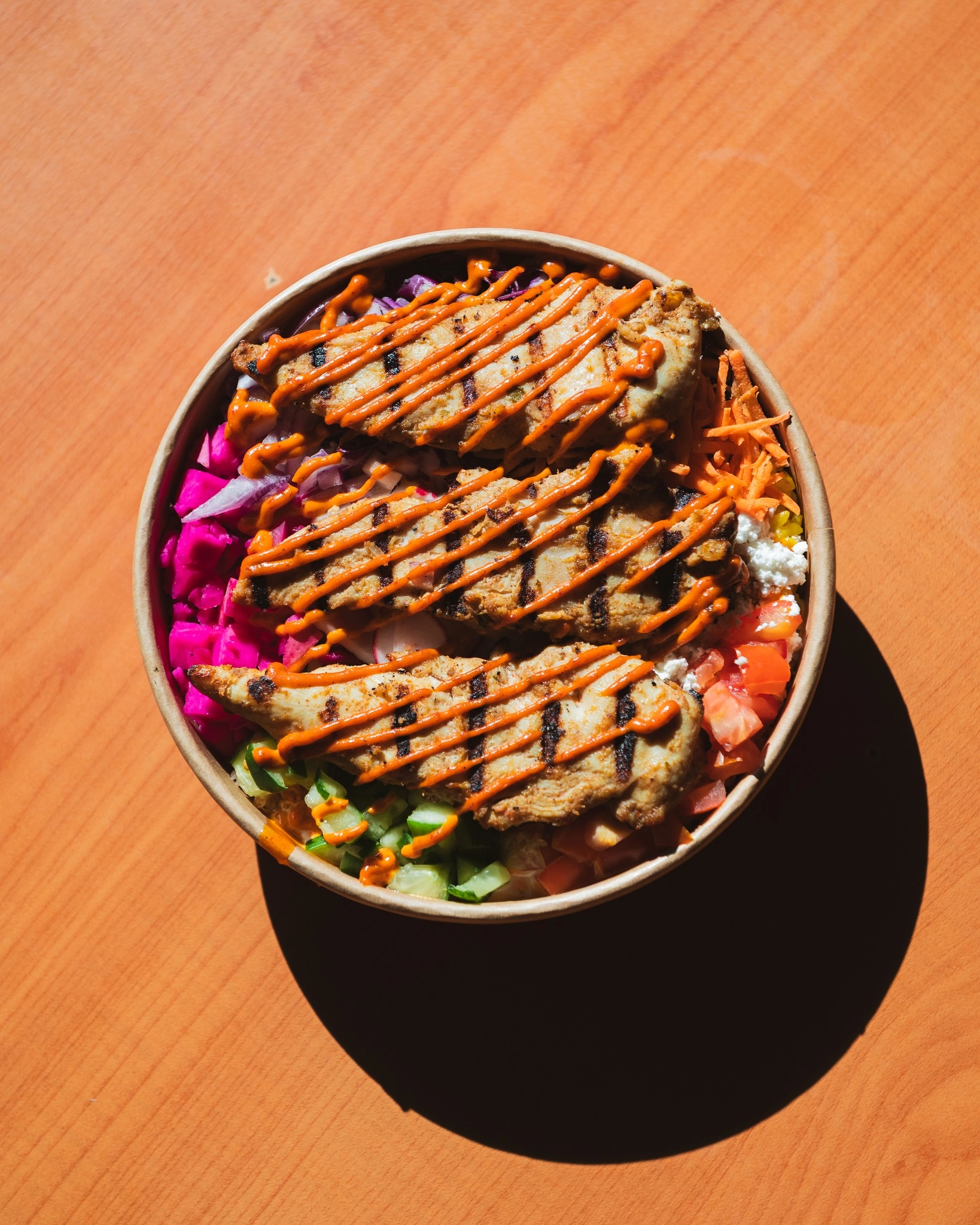 I tried three of their signature bowls—one with chicken, one with kebab, and one with fish—and each ...